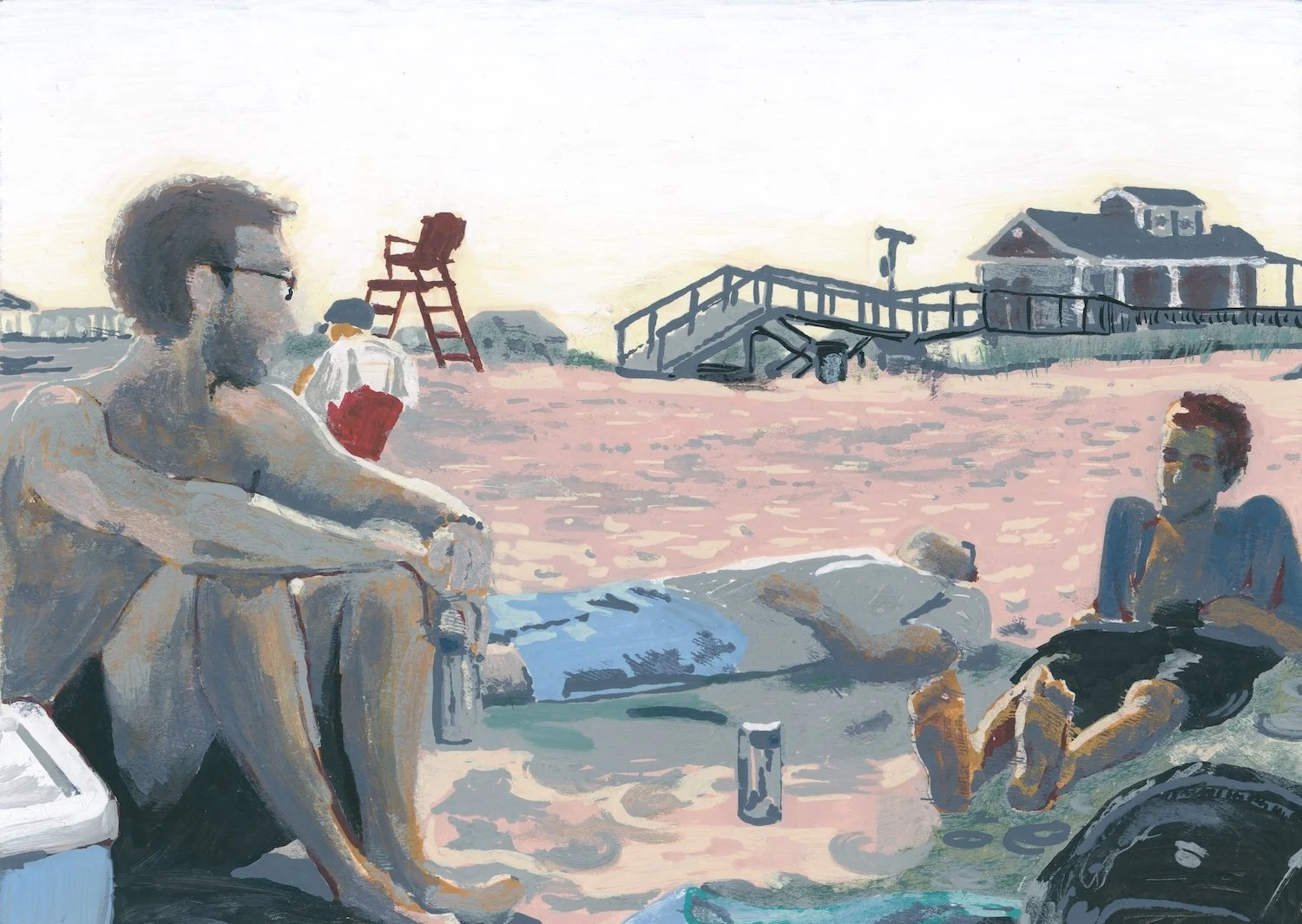 Connor Fitzsimmons "On the Beach at Dusk", marker on paper, 5" x 7", 2023, NFS