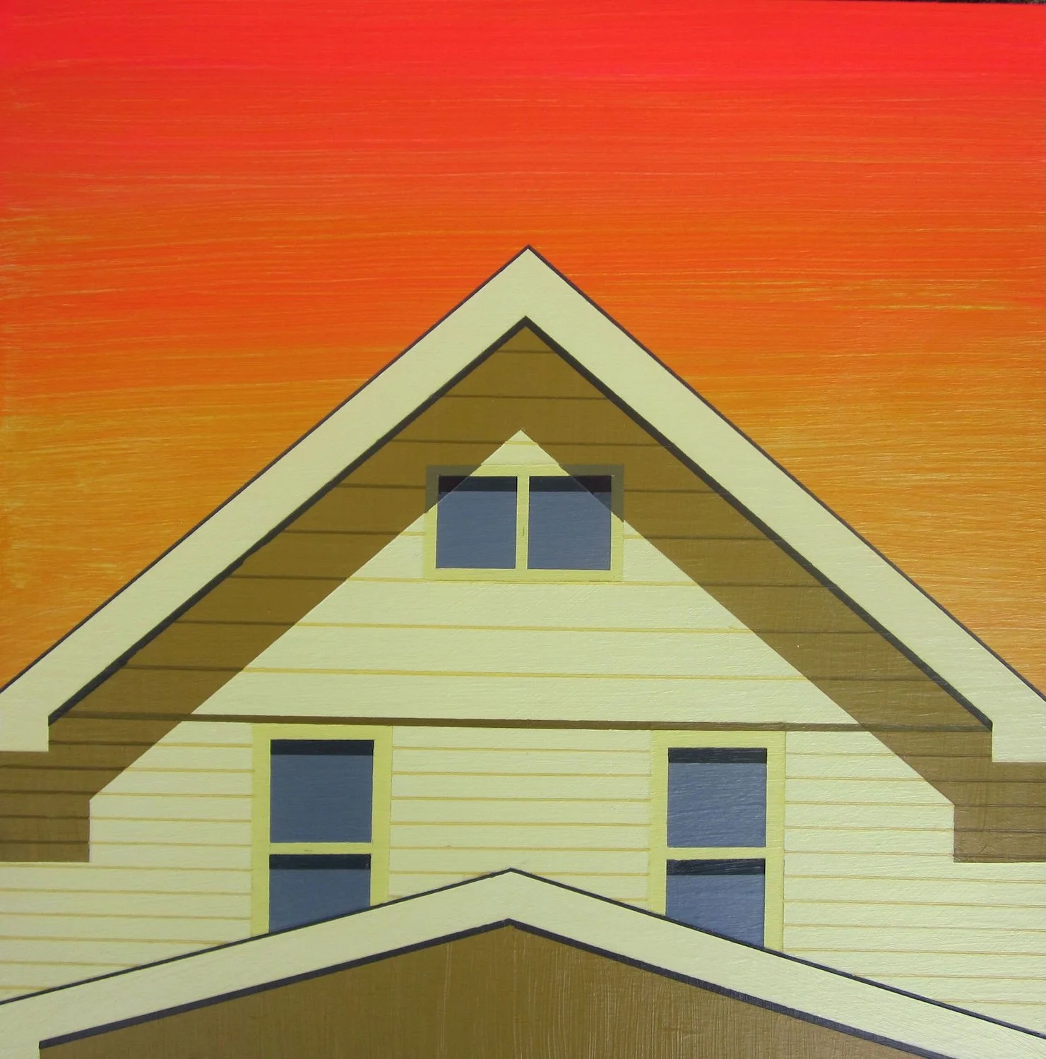 Diane Pribojan "Colonial with Gold Sky, acrylic, 12" x 12", 2009, SOLD